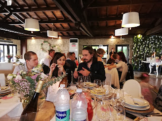 A festa foi na Quinta de Entre-Vinhas, perto de Vizela... A quinta é linda, tem instalações fantásticas e foi sem dúvida das melhores comidas "de casamento" que alguma vez comi. Já estou habituada que no Norte estas festas tenham muita comida (embora seja mais habitual em casamentos do que em baptizados), mas esta excedeu-se, principalmente nas entradas... tinha tanta, mas tanta variedade... e muito bem confeccionado. Mesmo muito bom!